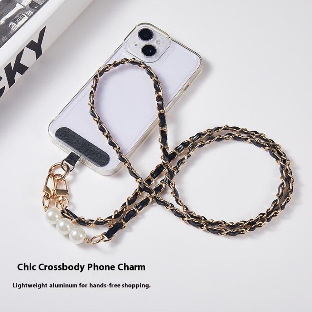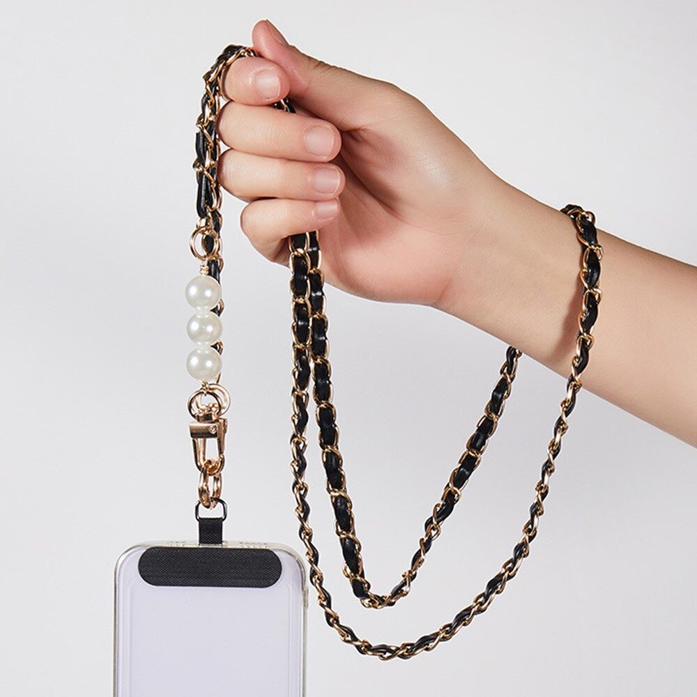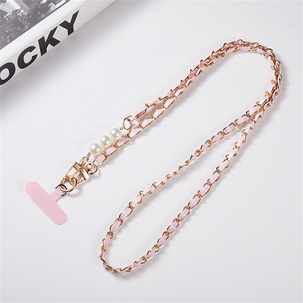 Op zoek naar een telefoonketting die meer is dan alleen handig? Dan is dit crossbody model echt een aanrader. Het koord heeft een elegante metalen ketting waar een zachte PU leren bandje doorheen gaat. Dit oogt luxe en draagt toch. fijn. De 3 parels geven net dat extra detail zodat het voelt als een stijlvol accessoire voor je smartphone.